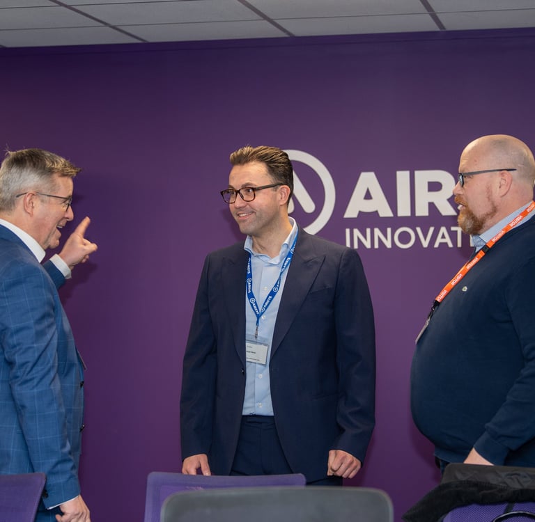 Craig Calvert, Channel Sales Director, Northern and Middle East Regions, Motorola Solutions, Inc. (left) with Zoe Hastings-Hindle, Head of Sales UK&I and Bojan Nikolic, Chief Executive Officer Airsys at the Airsys UK&I Innovation Centre Official Launch.